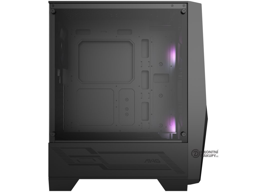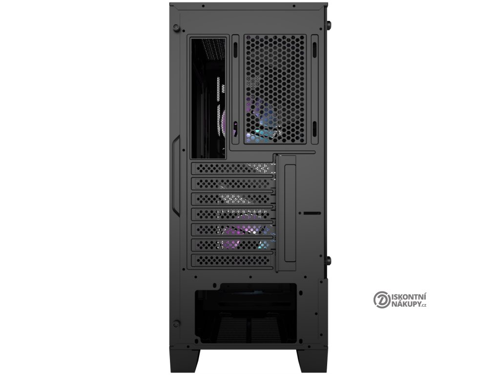 MSI MAG FORGE 100RKvalitní počítačová skříň formátu Middle Tower nabízí tři 2,5" a dvě 3,5" pozice pro SSD a pevné disky. Na horním panelu se nachází dva porty USB 3.0, sluchátkový výstup a audio vstup pro mikrofon. Skříň je vybavena dvěma 120 mm A-RGB ventilátory na přední straně a jedním 120 mm ventilátorem na zadní straně. Ve skříni je dostatek prostoru pro chladič CPU do výšky až 160 mm a grafickou kartu o délce až 330 mm. Skříň disponuje průhlednou odnímatelnou bočnicí z temperovaného skla a je dodávána bez zdroje.
