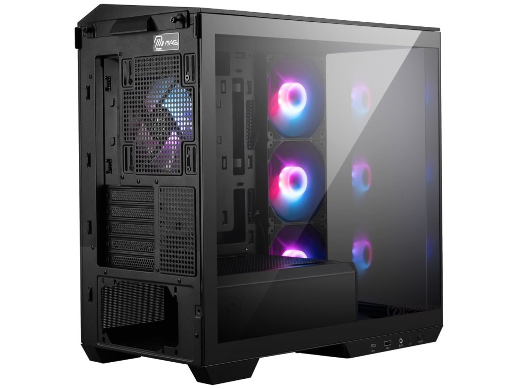 MSI skříň MAG PANO M100R PZ Black/ bez zdroje/ levé a přední sklo/ 4x 120 mm A-RGB fan/ 1x USB-C/ 1x USB3.2/ černá 306-7G24R25-HH9