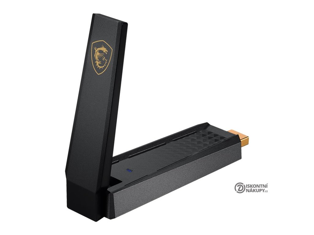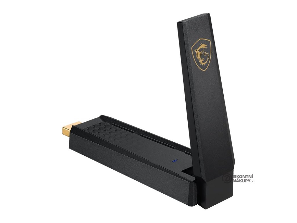 MSI AXE5400 Wi-Fi USB adaptérKompaktní Wi-Fi USB adaptér poskytuje téměř okamžitý upgrade pro váš stolní počítač nebo notebook. S podporou Wi-Fi 6E nabízí přenosovou rychlost až 2402 Mb/s v pásmu 6 GHz, 2402 Mb/s v pásmu 5 GHz a 574 Mb/s v pásmu 2,4 GHz. Díky zvýšené šířce pásma je ideální pro vysoce výkonné aplikace a přeplněná síťová prostředí. Výklopná anténa s vysokým ziskem spolu s technologií Beamforming zajišťují nejlepší pokrytí signálem pro hladké a stabilní připojení. Navíc s funkcí MSI FIRST umí adaptér účinně snižovat latenci v případě, že spolupracuje s MSI herním routerem. Šifrování WPA3 zvyšuje ochranu vaší sítě. Přiložená kolébka umožňuje flexibilně umístit adaptér tam, kde je potřeba.