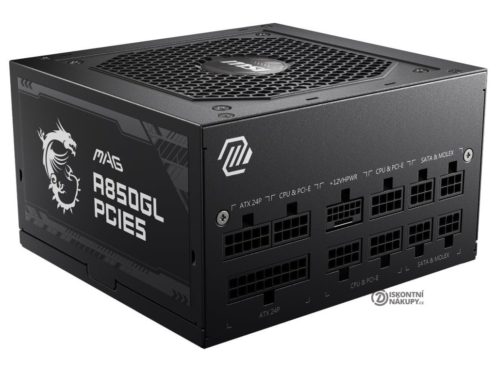 MSI zdroj MAG A850GL PCIE5 II/ 850W/ ATX3.1/ akt. PFC/ 7 let celk. záruka/ 120mm fan/ modulární kabeláž/ 80PLUS Gold 306-7ZP8D11-CE0