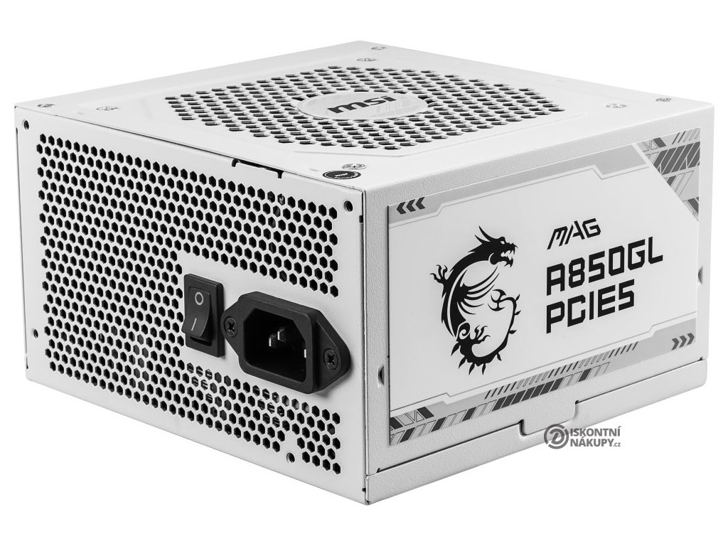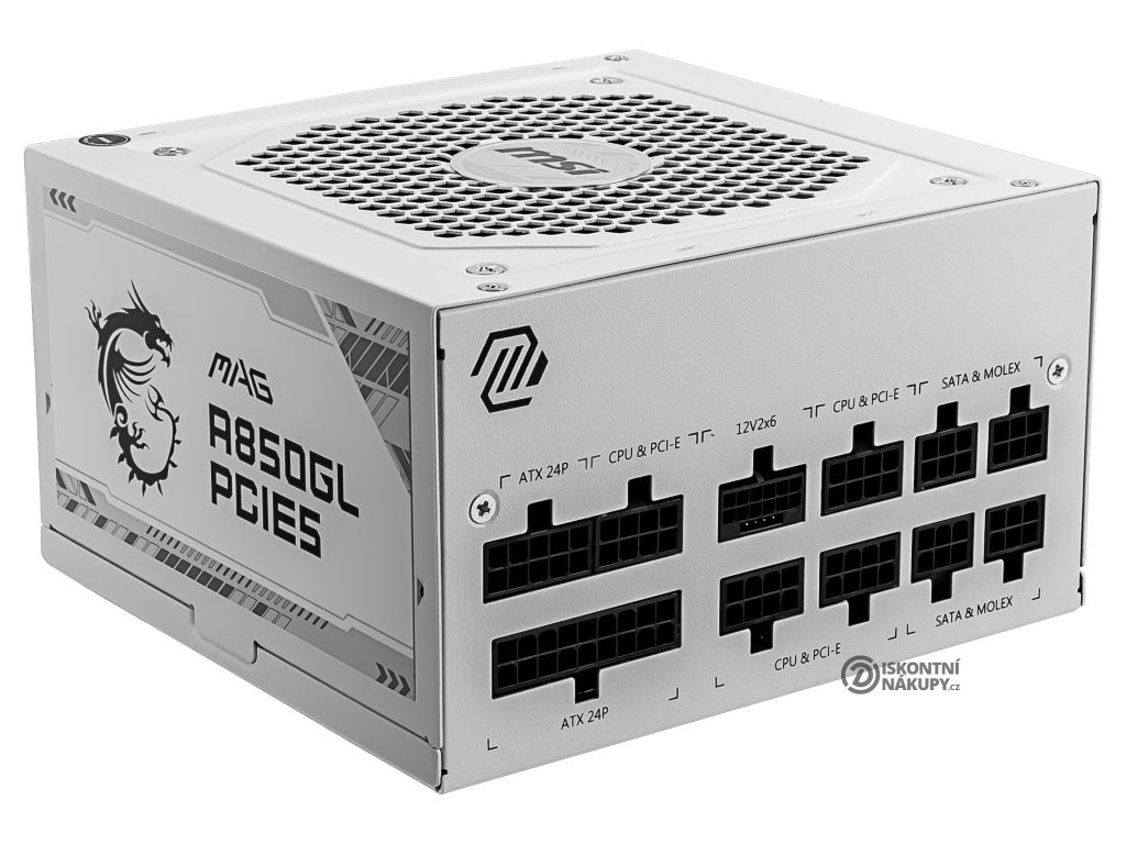 MSI MAG A850GL PCIE5 WHITE 850 WNapájecí zdroj o výkonu 850 W je osazen 120mm ventilátorem. Zdroj splňuje certifikaci 80PLUS Gold.