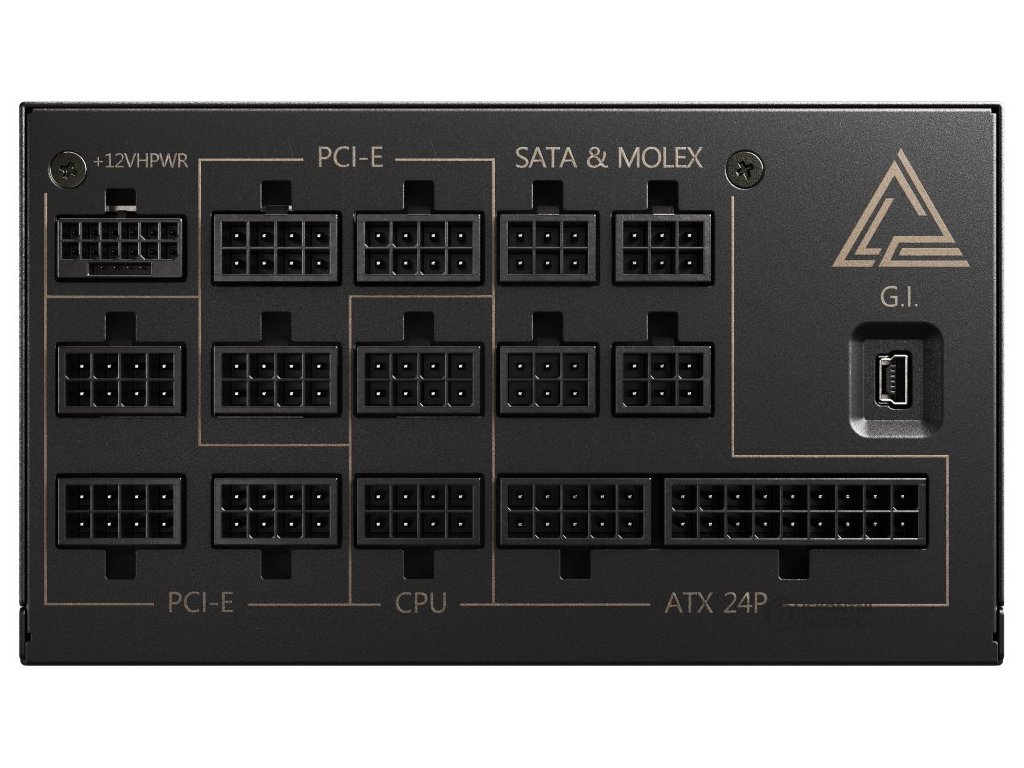 Napájecí konektory: 1× ATX 20+4pin, 1× EPS 4+4pin, 1× EPS 8pin, 8× PCIe 6+2pin, 1× PCIe 5.0 (600 W), 16× SATA, 4× Molex, 1× floppy, 1× mini USB