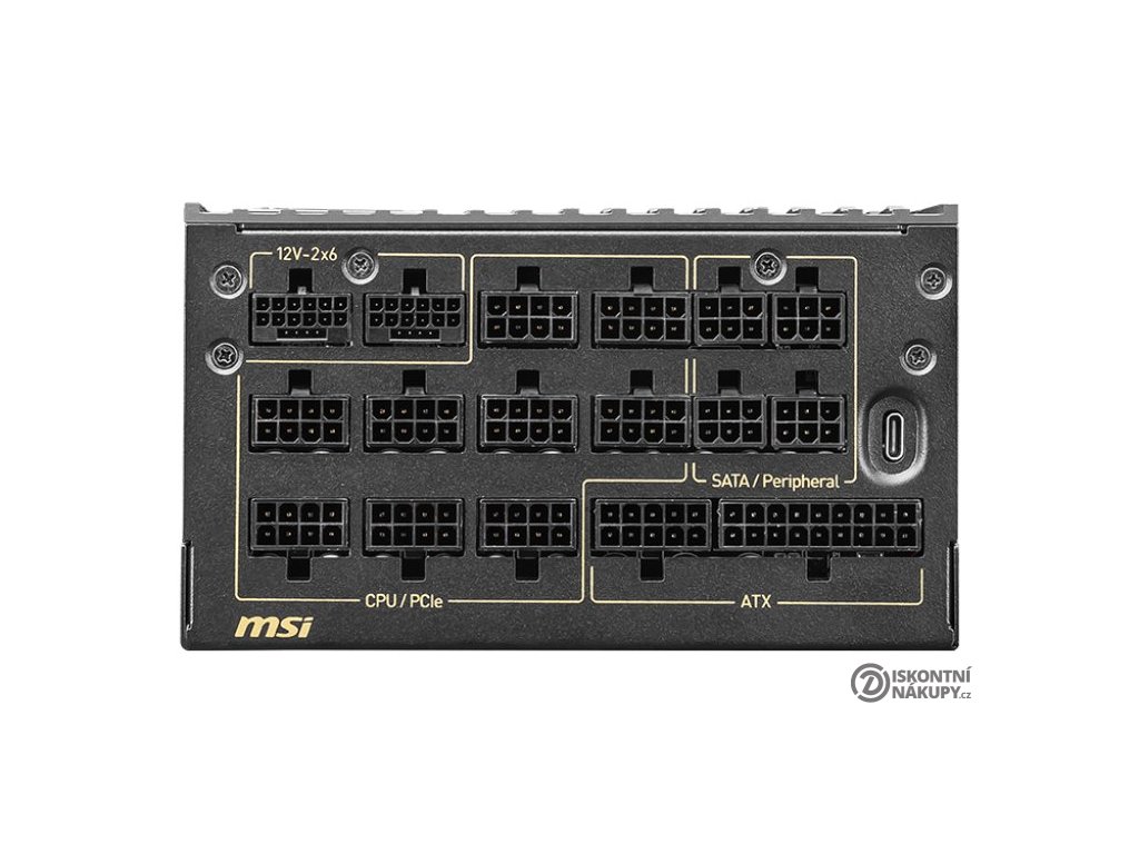 MSI MEG Ai1600T PCIE5Napájecí zdroj o výkonu 1600 W je osazen tichým a přitom výkonným 135 mm velkým ventilátorem. Zdroj splňuje certifikaci 80PLUS Titanium, standard ATX 3.1 a má odpojitelné kabely. Prostřednictvím MSI Gaming Intelligence je možné v reálném čase sledovat spotřebu jednotlivých komponentů či nastavovat rychlost ventilátoru.