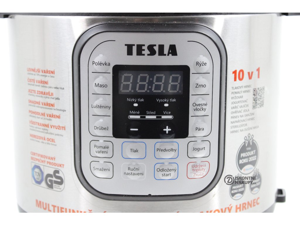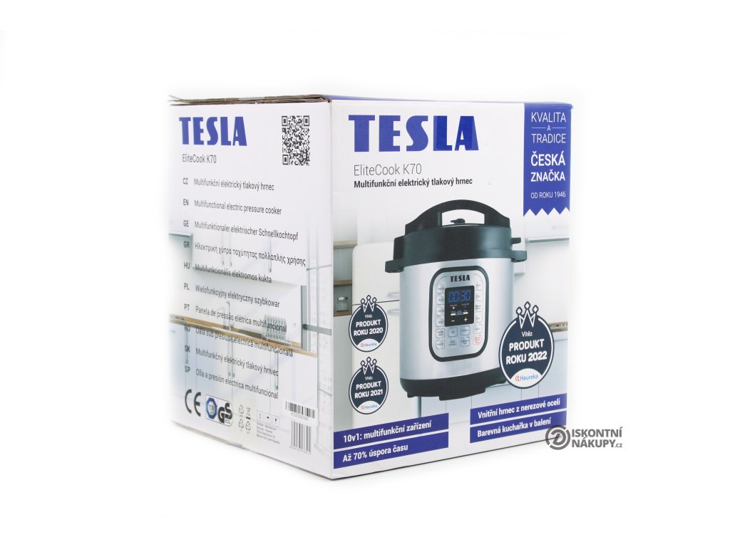 TESLA EliteCook K70 je elektrický tlakový hrnec navržený tak, aby byl bezpečný, pohodlný a spolehlivý. Navíc je přizpůsobený českým zákazníkům, protože ovládací tlačítka na předním panelu jsou v českém jazyce. Obsluha přístroje je tak velmi snadná a zvládne ji opravdu každý.