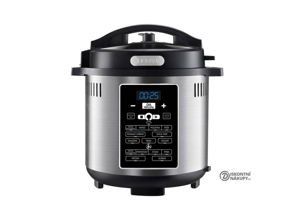 Multifunkční elektrický tlakový hrnec TESLA EliteCook K80 Deluxe je tlakový hrnec, horkovzdušná fritéza, pomalý hrnec, Sous vide, rýžovar, jogurtovač, napařovací hrnec, pánev na smažení nebo restování, vařič vajíček, ohřívač jídla, sušička jídla, sterilizátor. Uvaří také současně hlavní jídlo i přílohu.