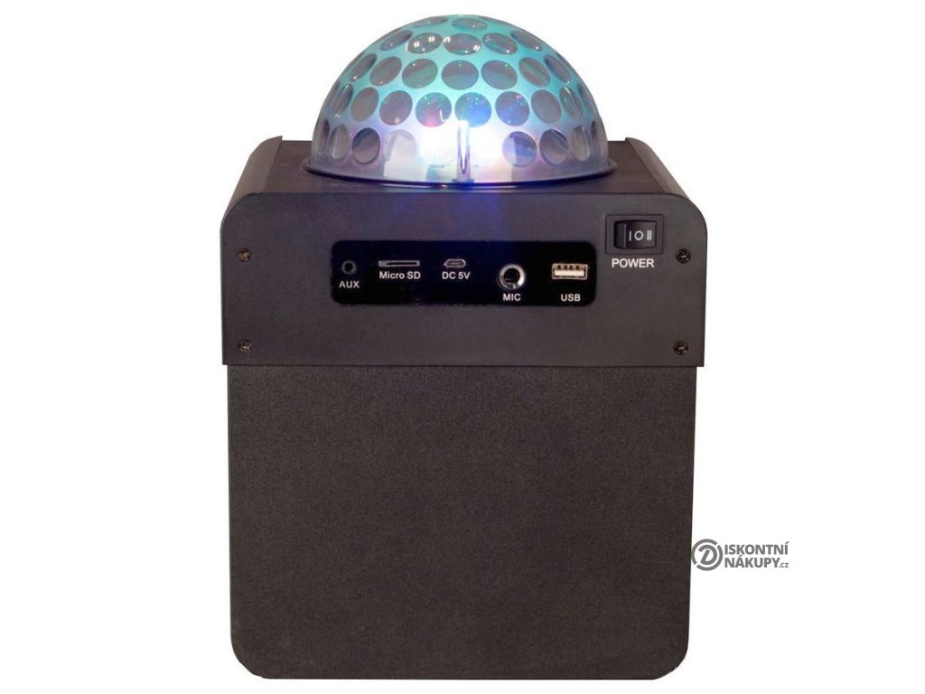 Přenosný reproduktor s výkonem 50 W zajistí dostatečné ozvučení vaší párty. Hudbu lze přehrávat jak drátově skrze AUX vstup, tak i bezdrátově pomocí technologie Bluetooth. Pro rychlé přehrávání z paměťových médií je přítomen USB port a čtečka micro SD karet. Pokud si párty chcete opravdu užít, můžete využít také vstup pro mikrofon. V případě, že není k dispozici elektrická zásuvka, zajistí provoz integrovaná baterie s výdrží až 6 hodin. Napájení je realizováno skrze micro USB konektor.