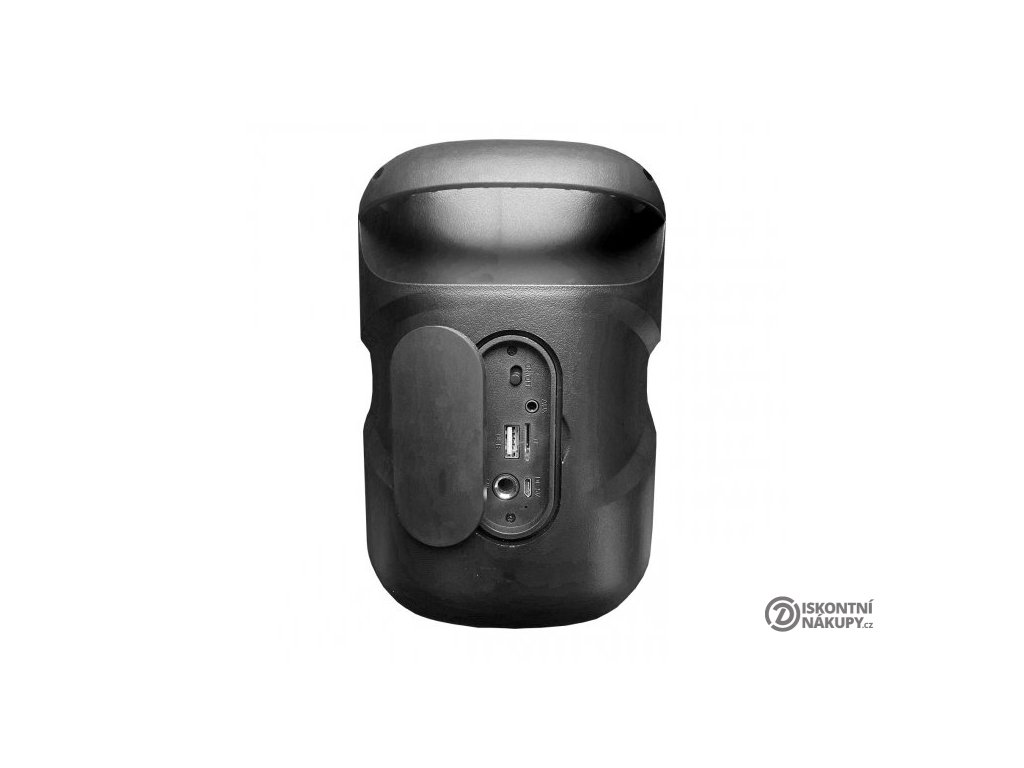 Párty reproduktor s výkonem 30 W a barevným LED podsvícením. Hudbu lze přehrávat jak drátově skrze AUX vstup, tak i bezdrátově pomocí technologie Bluetooth. Pro rychlé přehrávání z paměťových médií je přítomen USB port a čtečka microSD karet. Pokud si párty chcete opravdu užít, můžete využít také vstup pro mikrofon. V balení se mikrofon nachází, reproduktor je proto vhodný i pro karaoke. Díky vestavěné baterii lze přehrávat hudbu až 6 hodin bez nutnosti připojení na elektrickou síť.