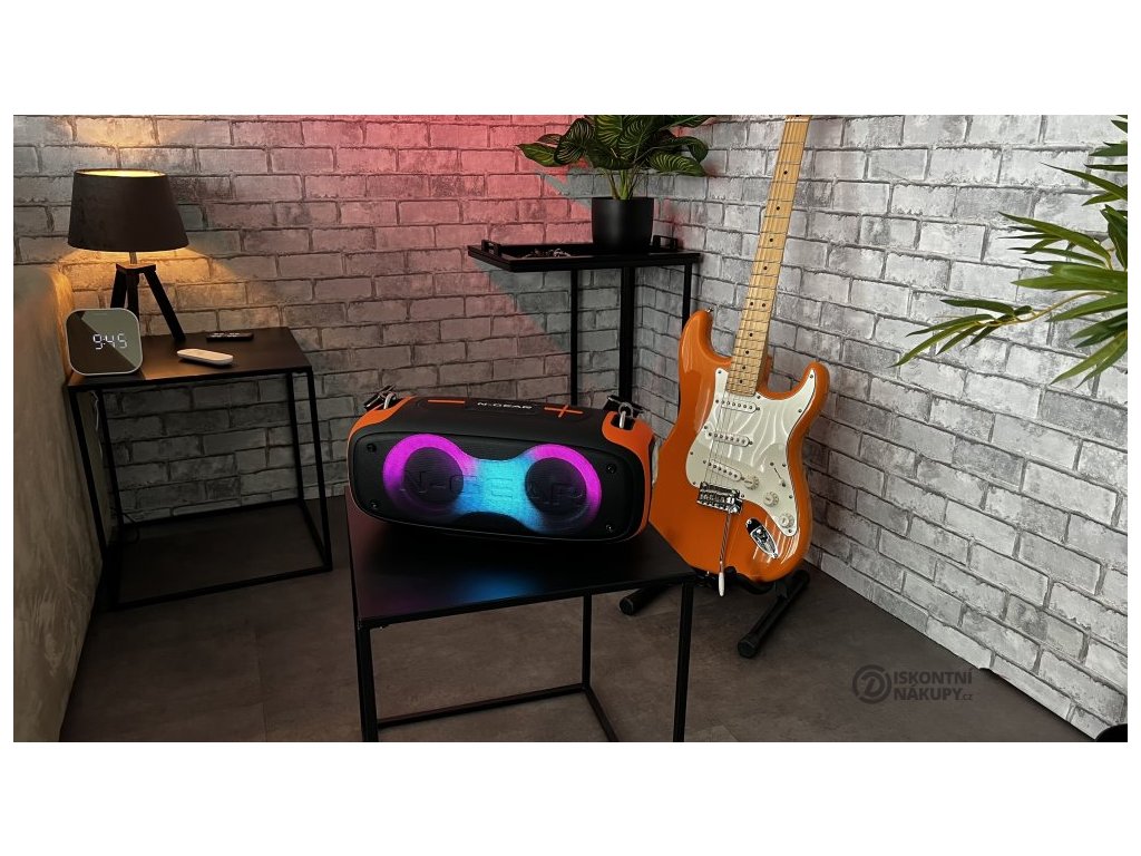 Voděodolný párty reproduktor s výkonem 70 W a barevným LED podsvícením. Hudbu lze přehrávat jak drátově skrze AUX vstup, tak i bezdrátově pomocí technologie Bluetooth. Pro rychlé přehrávání z paměťových médií je přítomen USB port a čtečka microSD karet. Integrovaná baterie s kapacitou 8800 mAh zajistí až 6 hodin provozu. Technologie True Wireless Stereo (TWS) umožňuje spárovat dva reproduktory a zdvojnásobit tak zvukový zážitek.
