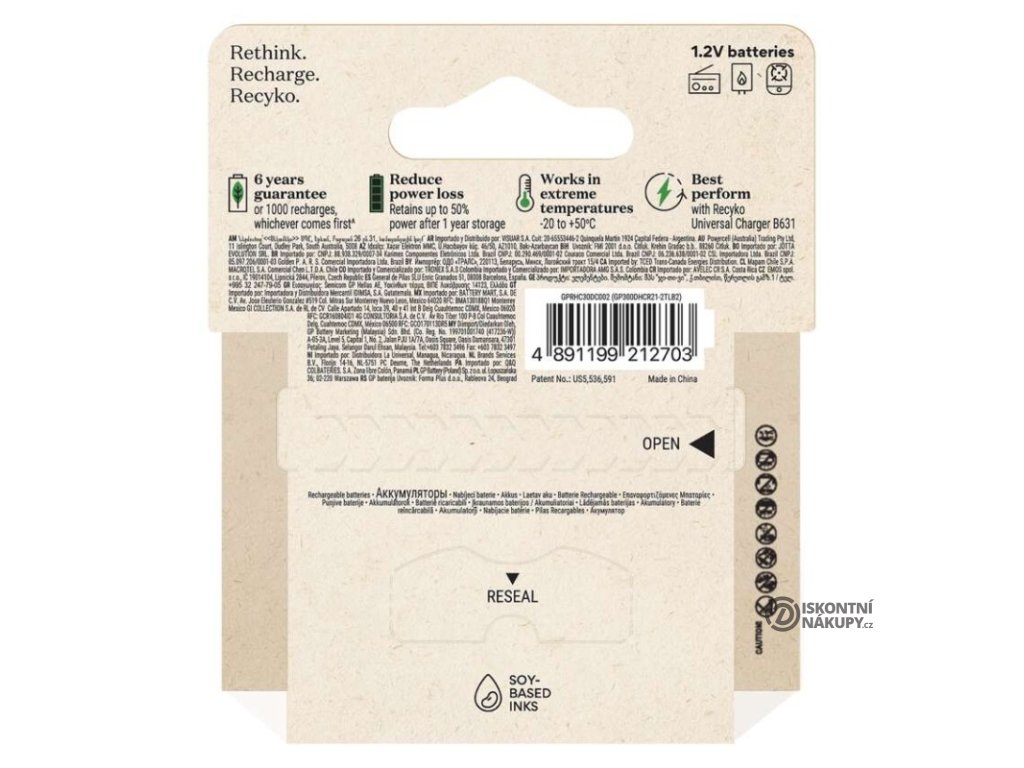 Adresa : | Bucharova 1423/6, budova I 158 00 Praha 5 – Stodůlky Česká republika Společnost GP Batteries splňuje požadavky dle nařízení (EU) 2023/988 – GPSR. Údaje o výrobci jsou uvedeny na obalech i v dokumentaci k produktům. |