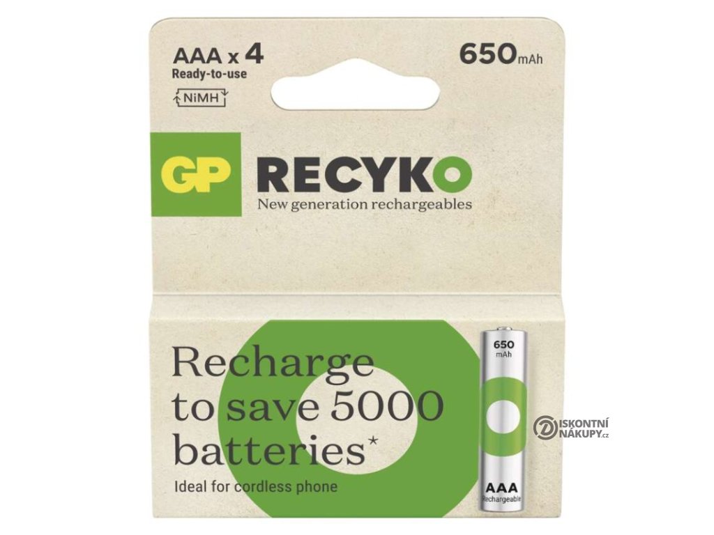Nabíjecí baterie GP ReCyko 650 mAh AAA (HR03), 4 ks