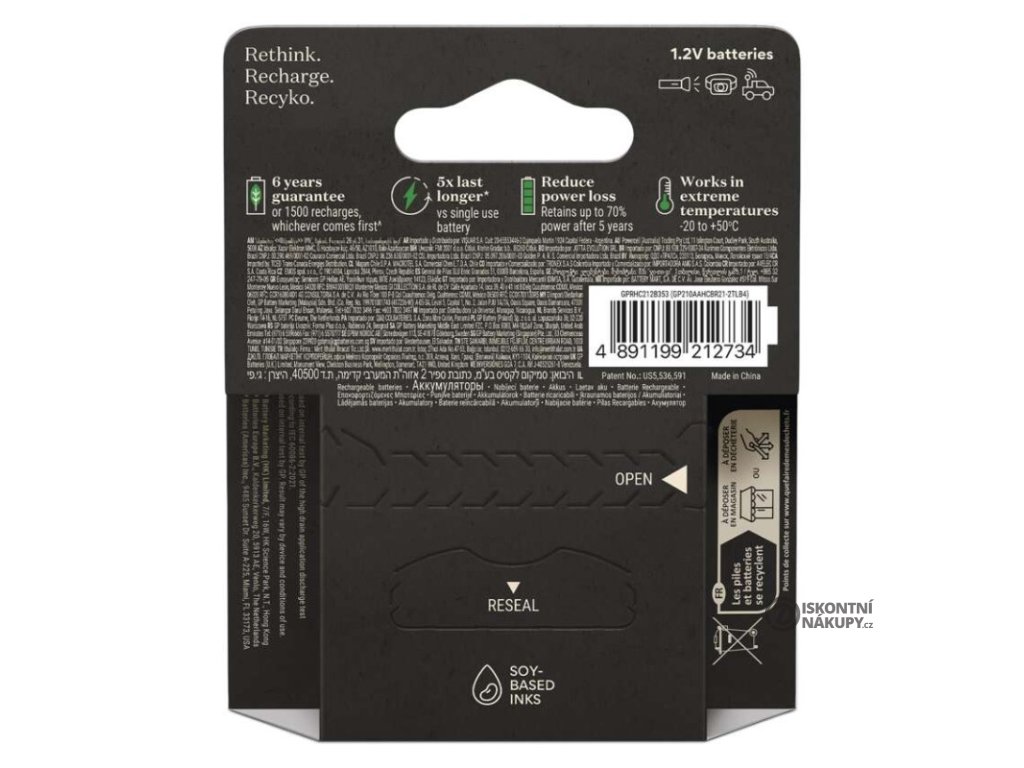 chemické složení: NiMH|hmotnost: 30 g|kapacita: 2 000 mAh|kategorie/řada: ReCyko Pro|max. skladovatelnost: neuvádí se|možnost nabíjení: ano|napětí: 1,2 V|počet nabíjecích cyklů: více než 1 500|prodejní obal: 4 ks, papírová krabička|provozní teplota: -20 °C až +50 °C|rozměr: 14,5 × 50,5 mm|typ: HR6 (tužka, AA)|velikost baterie: AA|značka: GPDoplňkové parametry