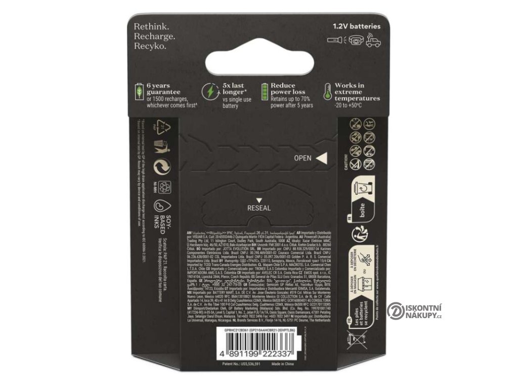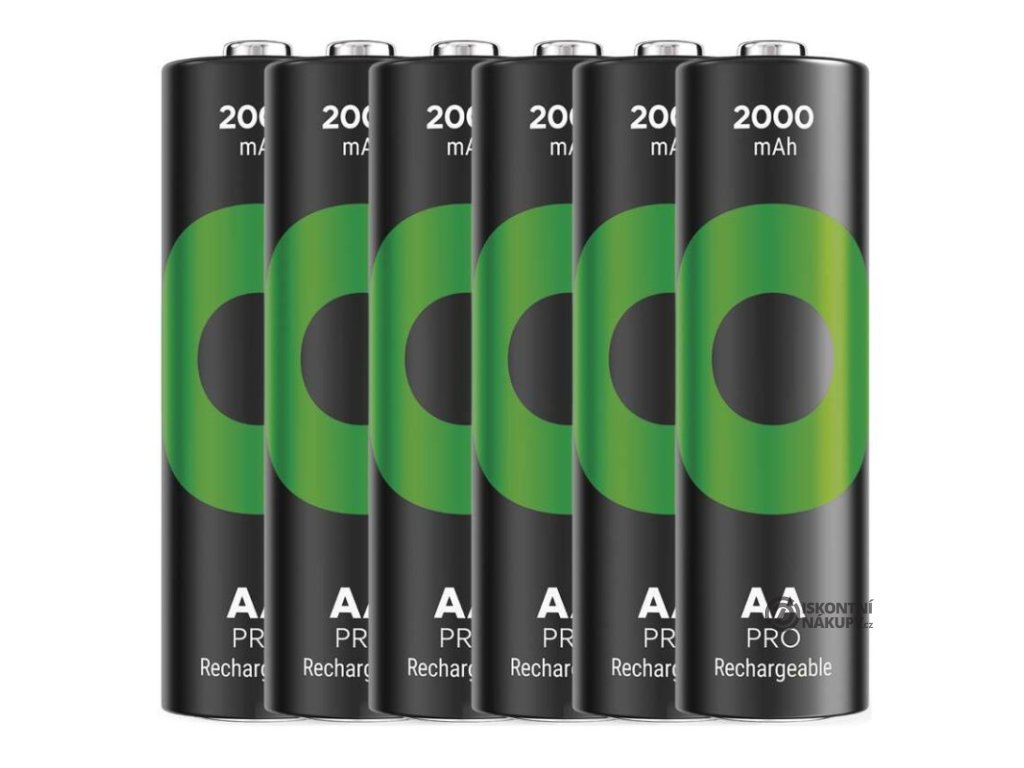 chemické složení: NiMH|hmotnost: 30 g|kapacita: 2 000 mAh|kategorie/řada: ReCyko Pro|max. skladovatelnost: neuvádí se|možnost nabíjení: ano|napětí: 1,2 V|počet nabíjecích cyklů: více než 1 500|prodejní obal: 6 ks, papírová krabička|provozní teplota: -20 °C až +50 °C|rozměr: 14,5 × 50,5 mm|typ: HR6 (tužka, AA)|velikost baterie: AA|značka: GPDoplňkové parametry
