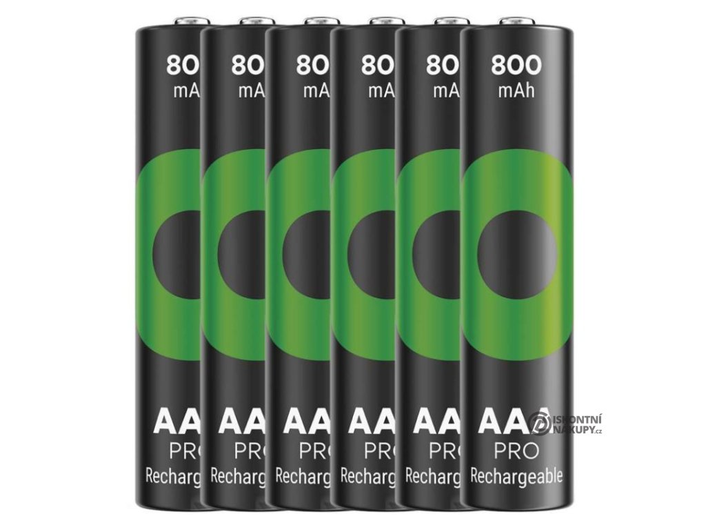 chemické složení: NiMH|hmotnost: 14 g|kapacita: 800 mAh|kategorie/řada: ReCyko Pro|max. skladovatelnost: neuvádí se|možnost nabíjení: ano|napětí: 1,2 V|počet nabíjecích cyklů: více než 1 500|prodejní obal: 6 ks, papírová krabička|provozní teplota: -20 °C až +50 °C|rozměr: 10,5 × 44,5 mm|typ: HR03 (mikrotužka, AAA)|velikost baterie: AAA|značka: GPDoplňkové parametry