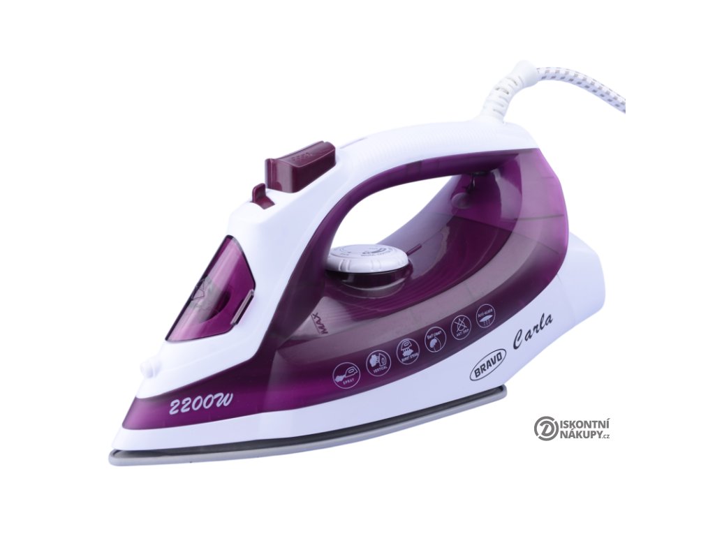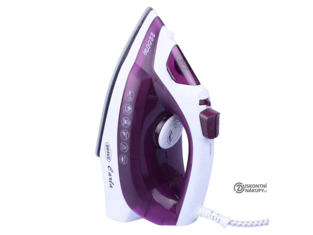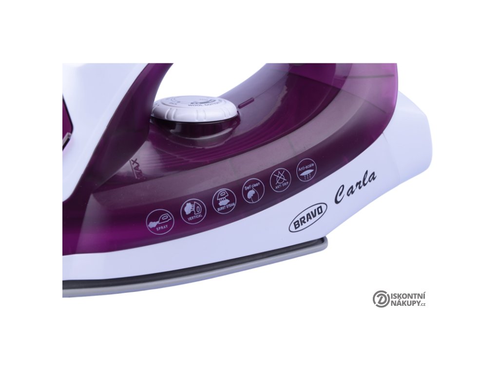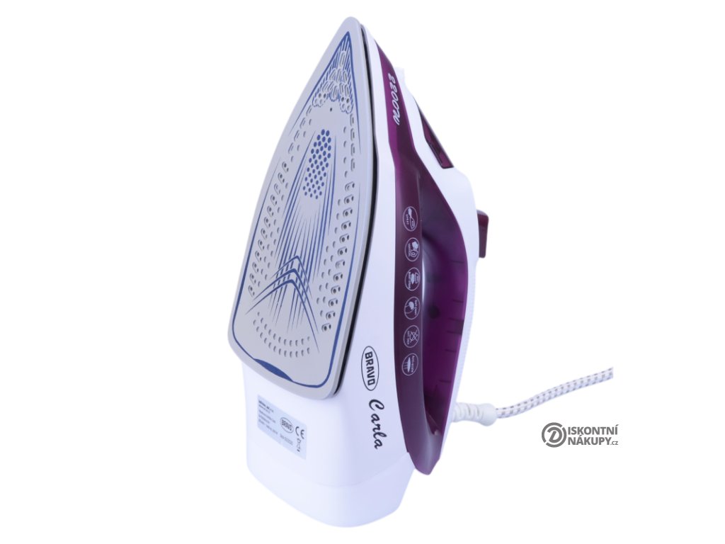 Napařovací žehlička Carla s keramickou žehlící plochou s funkcí proti odkapávání a vodního kamene. Žehlička má regulaci teploty, samočištění, 195 cm dlouhou přívodní šňůru Objem nádržky na vodu je 300 ml.