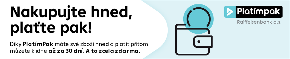 Zavedli jsme pro vás novou platební metodu PlatímPak. Jde o službu odložené platby, která umožňuje zaplatit objednávku až za 30 dní, a to zcela zdarma, pokud zákazník uhradí včas.