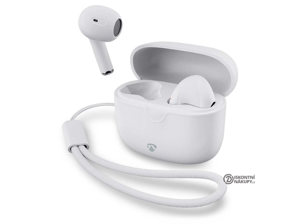 NEDIS bezdrátová sluchátka + mikrofon/ TWS/ BT/ 94 dB/ výdrž 16 hodin/ hlasové ovládání/ nabíjecí pouzdro/ USB-C/ bílé HPBT2400WT