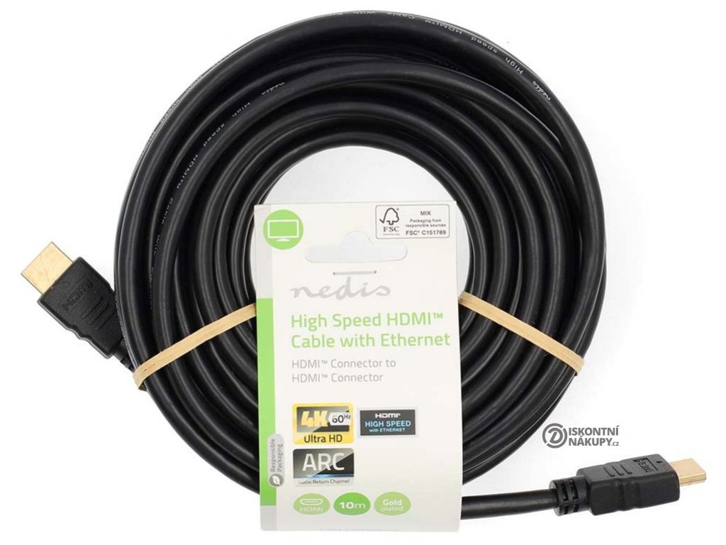 Nedis HDMI 2.0 kabel s Ethernetem 10 mHigh Speed HDMI 2.0 kabel s Ethernetem a zlacenými konektory je vhodný k propojení jednotlivých zařízení. Podporuje přenos videa v rozlišení 4K při 60 Hz a funkce jako je ARC (Audio Return Channel), HDCP nebo 3D obsah ve Full HD.