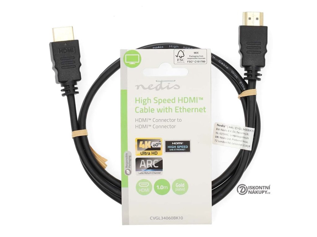 Nedis HDMI 2.0 kabel s Ethernetem 1 mHigh Speed HDMI 2.0 kabel s Ethernetem a zlacenými konektory je vhodný k propojení jednotlivých zařízení. Podporuje přenos videa v rozlišení 4K při 60 Hz a funkce jako je ARC (Audio Return Channel), HDCP nebo 3D obsah ve Full HD.