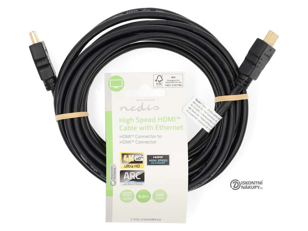 Nedis HDMI 2.0 kabel s Ethernetem 5 mHigh Speed HDMI 2.0 kabel s Ethernetem a zlacenými konektory je vhodný k propojení jednotlivých zařízení. Podporuje přenos videa v rozlišení 4K při 60 Hz a funkce jako je ARC (Audio Return Channel), HDCP nebo 3D obsah ve Full HD.