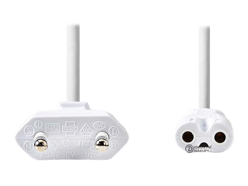 NEDIS napájecí kabel 230V pro adaptéry/ přípojný/ Euro zástrčka/ konektor IEC-320-C7/ dvoulinka/ bílý/ bulk/ 2m CEGL11040WT20