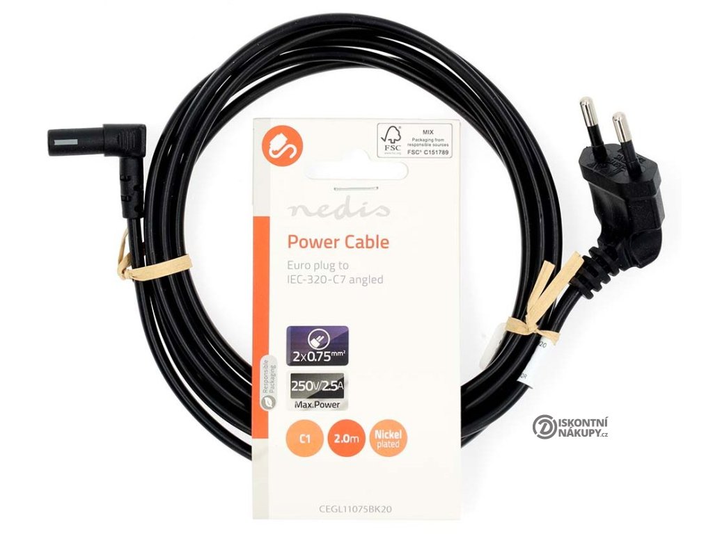 NEDIS napájecí kabel pro adaptéry/ Euro zástrčka - konektor IEC-320-C1/ úhlový-úhlový/ dvoulinka/ černý/ bulk/ 2m CEGL11075BK20