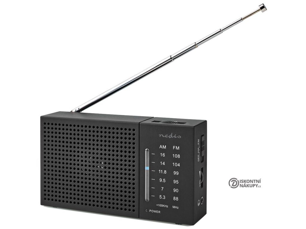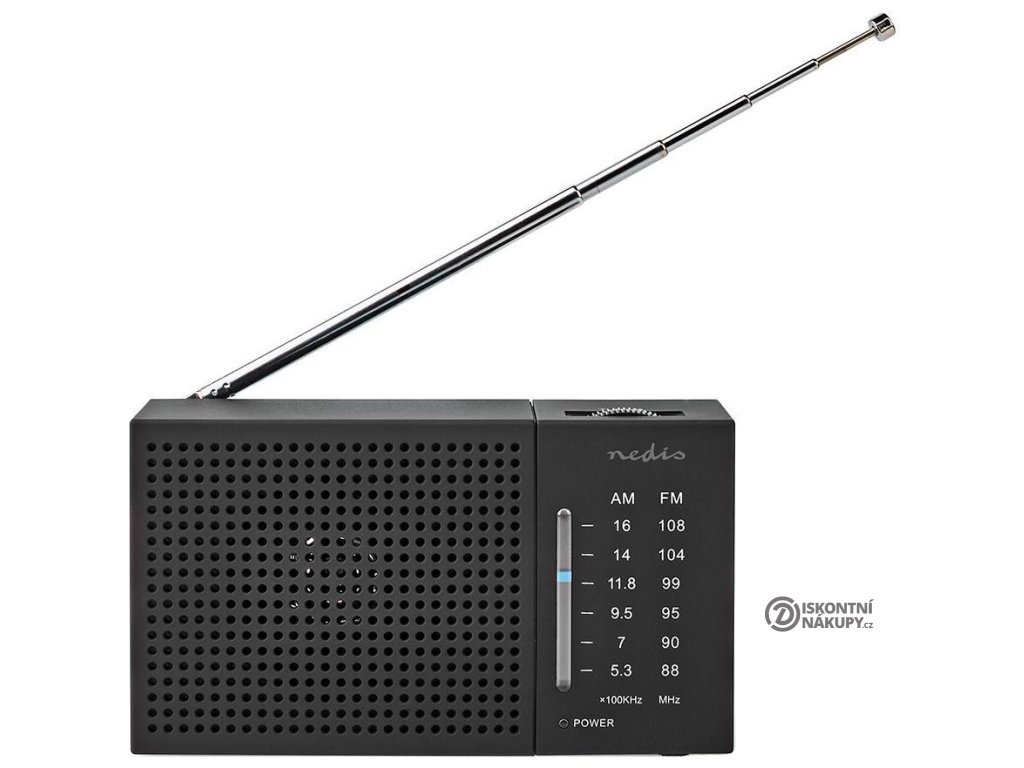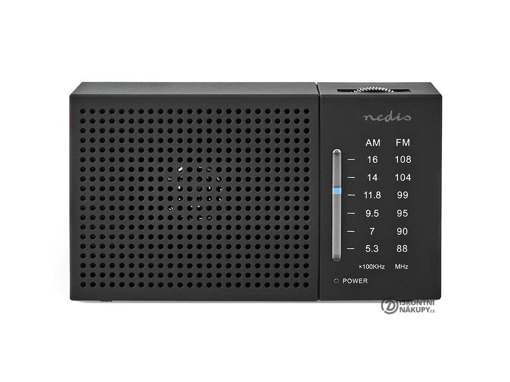 NEDIS přenosné rádio/ AM/ FM/ napájení z baterie/ analogové/ 1.5 W/ výstup pro sluchátka/ černé RDFM1200BK