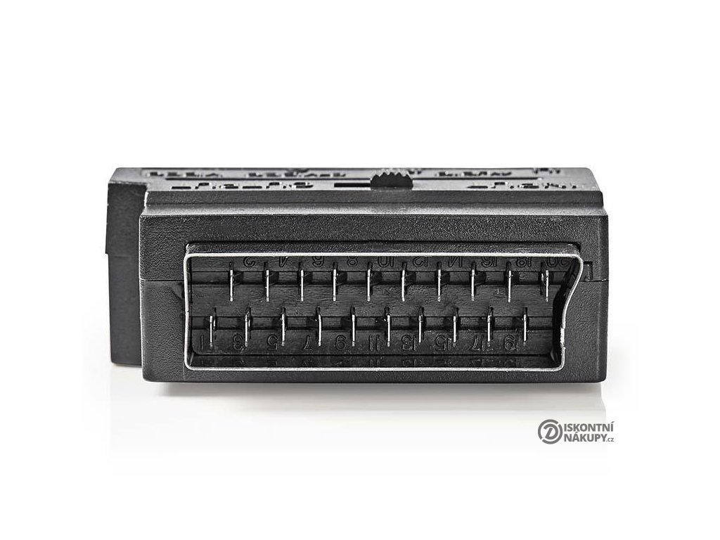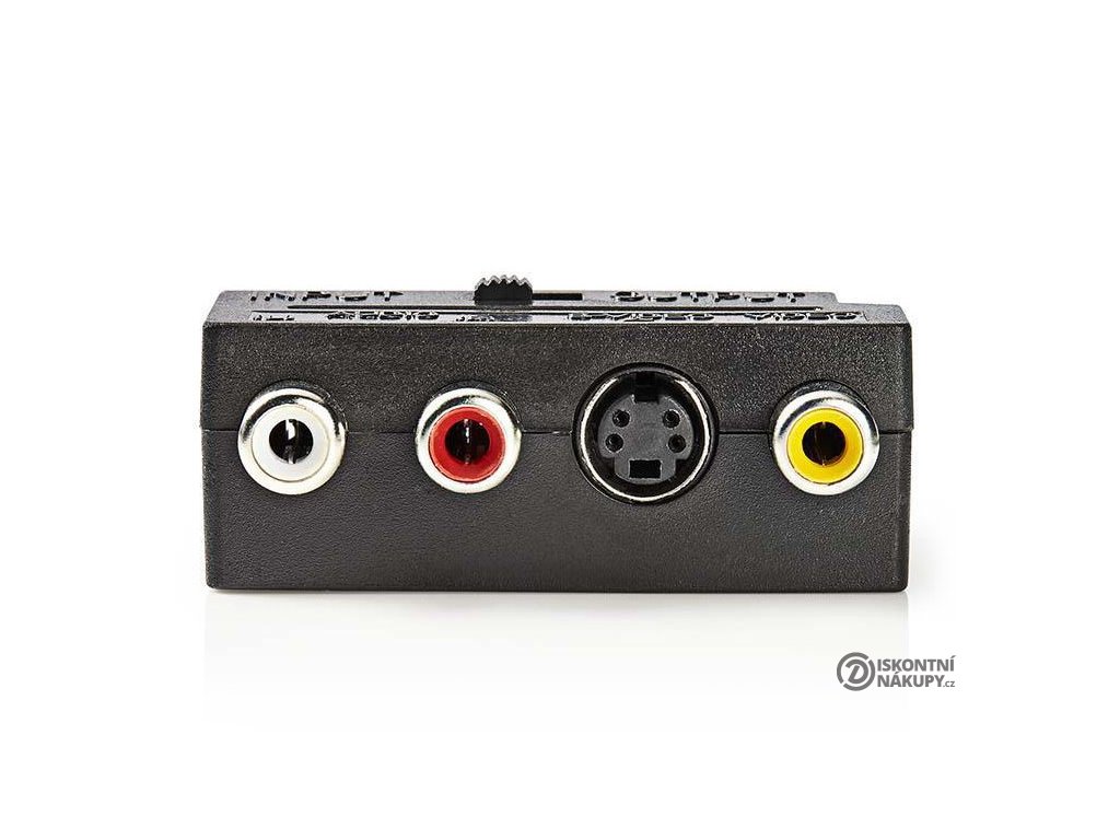 NEDIS přepínatelný SCART adaptér / SCART zástrčka - S-Video zásuvka + 3x RCA zásuvka/ černý CVGP31902BK