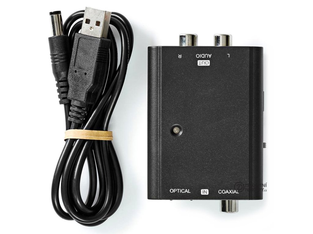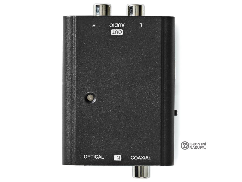 Konektory: 1 x Toslink (vstup), 1 x RCA (S/PDIF vstup), 2 x RCA (výstup)