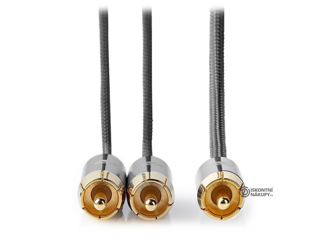 NEDIS PROFIGOLD audio kabel k subwooferu/ RCA zástrčka - 2x RCA zástrčka/ bavlna/ šedý/ BOX/ 3m CATB24000GY30