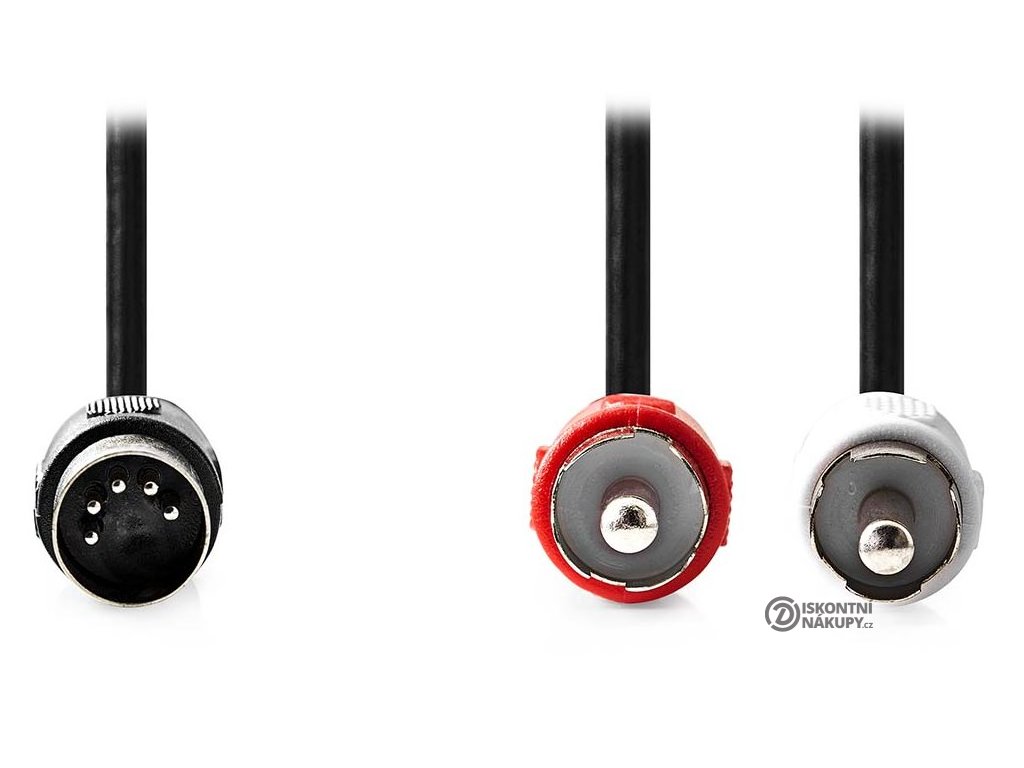 Nedis redukční audio kabel DIN na 2× RCA 1 mTento stereo audio kabel s 5pinovým konektorem DIN a dvěma RCA konektory je vhodný k připojení audiozařízení, jako je například kazetový přehrávač nebo CD přehrávač, k zesilovači.