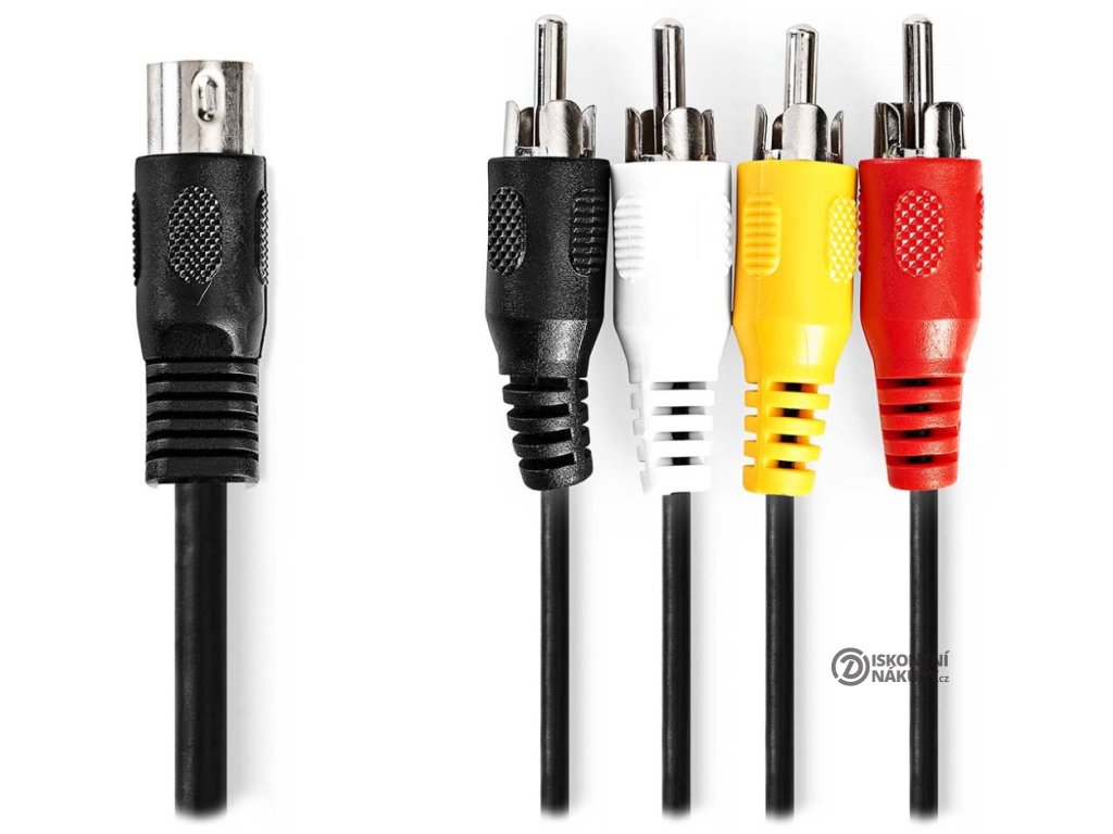 NEDIS redukční audio kabel DIN/ 5pin zástrčka DIN - 4× zástrčka RCA/ černý/ bulk/ 1m CAGL20400BK10