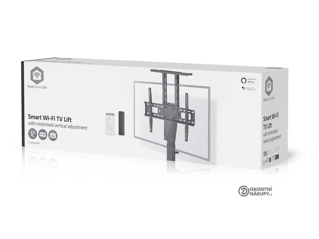 Nedis TVSM5840BKMotorizovaný stojan vhodný pro televizory s úhlopříčkou 37" až 80" nabízí plynulé vysunutí v rozsahu 68 až 158 centimetrů. Stojan je určený k instalaci do skříně, přičemž horní panel skříně lze namontovat na stojan. Televizor tak v době nečinnosti zůstane kompletně ukrytý. Výšku lze nastavit pohodlně pomocí dálkového ovládání, které umožňuje také uložení dvou oblíbených pozic. Největší předností stojanu je ale možnost ovládání skrze mobilní aplikaci či hlasové asistenty Google Assistant nebo Amazon Alexa. Stačí stojan připojit k Wi-Fi síti a poté ho v aplikaci Nedis SmartLife začlenit do vaší chytré domácnosti. Antikolizní funkce zajišťuje bezpečnost vašeho televizoru a zabraňuje náhodnému poškození. Maximální zatížení stojanu je 60 kg.