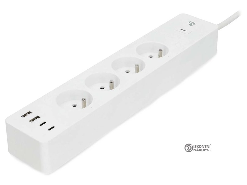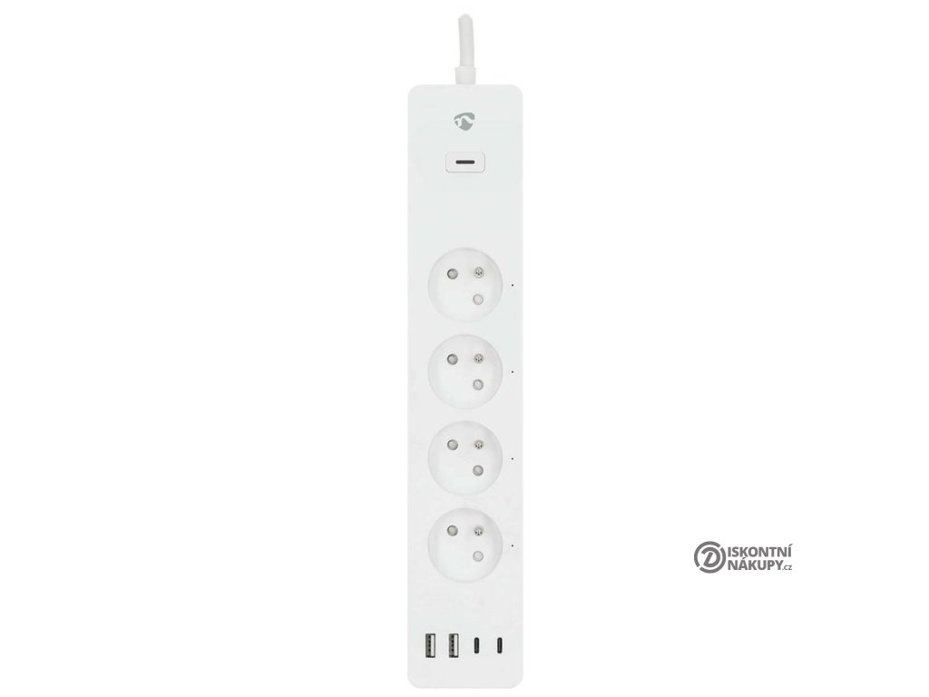 Nedis WIFIP313EWTKompaktní chytrý prodlužovací přívod s bezdrátovým připojením Wi-Fi disponuje čtyřmi zásuvkami CEE 7/5 (typ E), dvěma porty USB a dvěma porty USB-C s podporou PD 3.0 20 W.