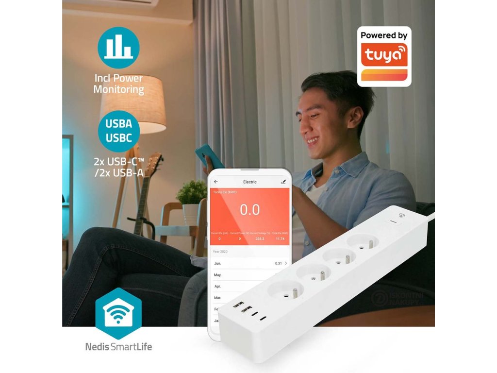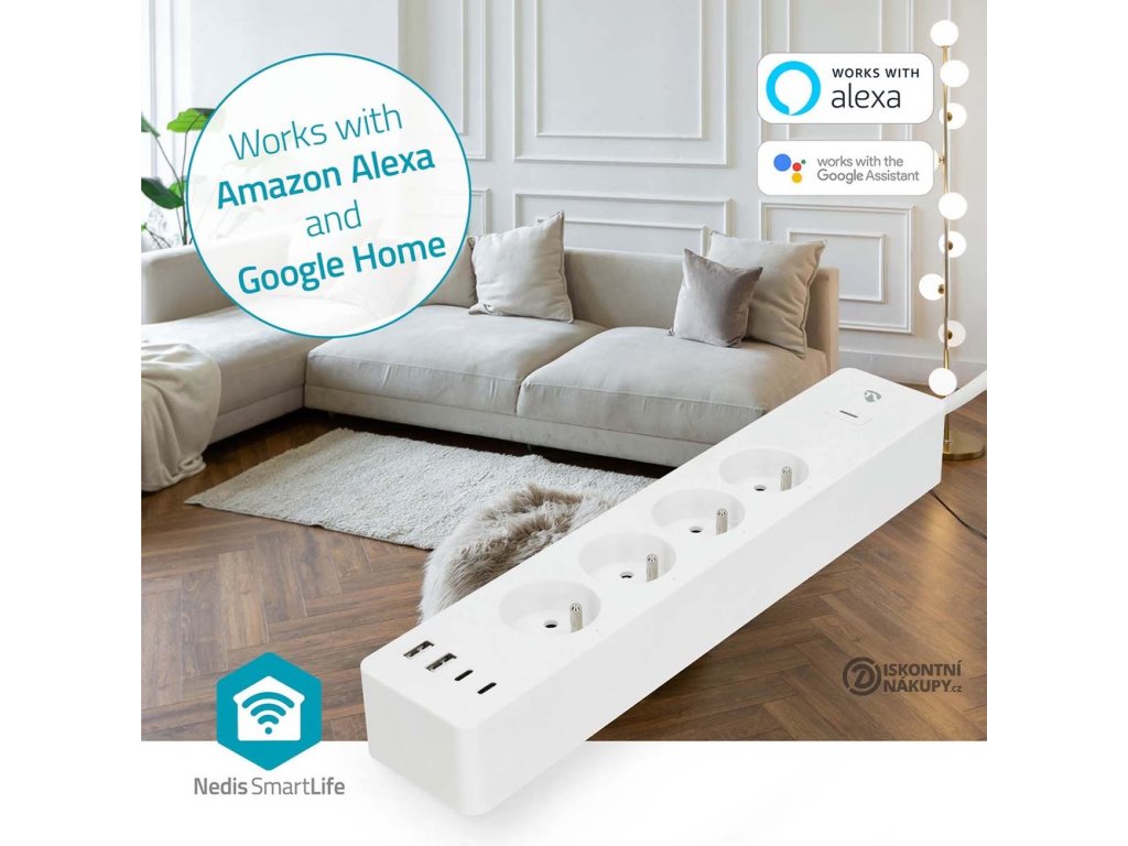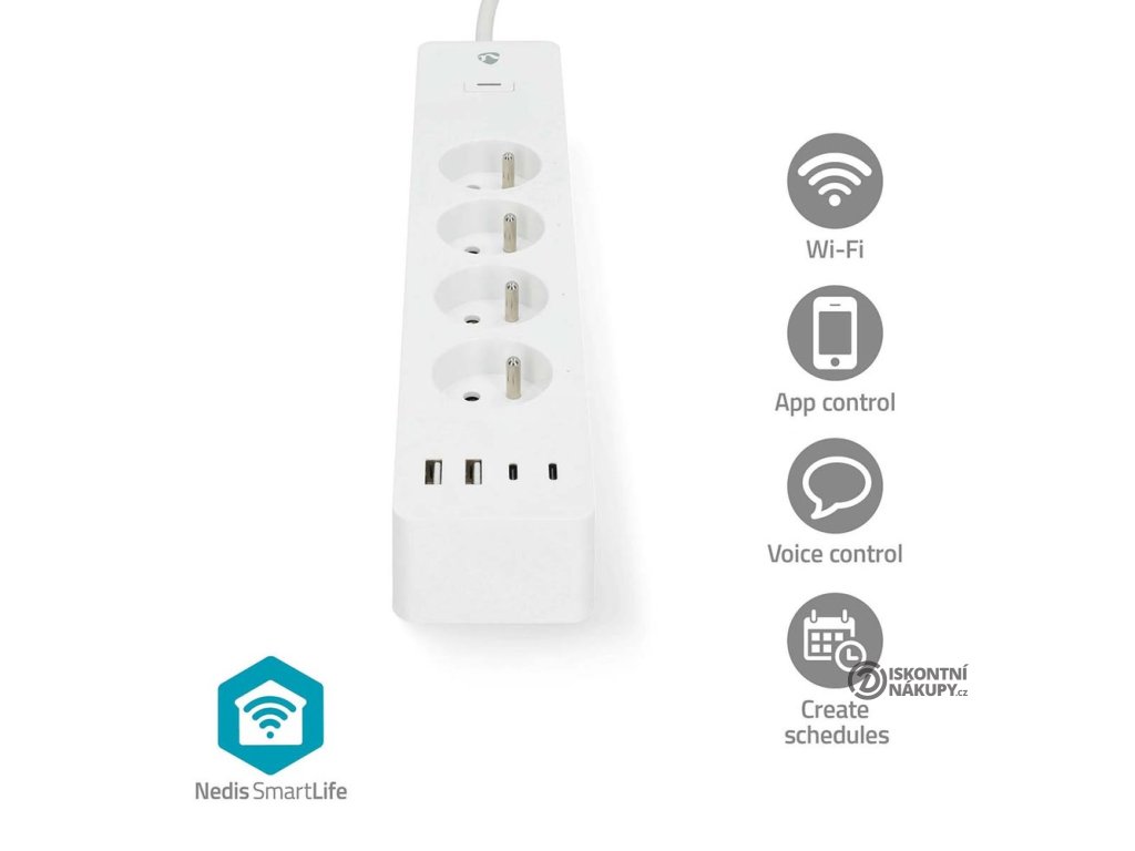 Po propojení s aplikací Nedis SmartLife umožňuje zapínat a vypínat zařízení nebo jejich použití naplánovat. Díky podpoře Amazon Alexa, Google Home a Siri lze prodlužovací přívod ovládat pomocí hlasových příkazů. Integrovaná přepěťová ochrana chrání citlivou elektroniku a spotřebiče před poškozením.