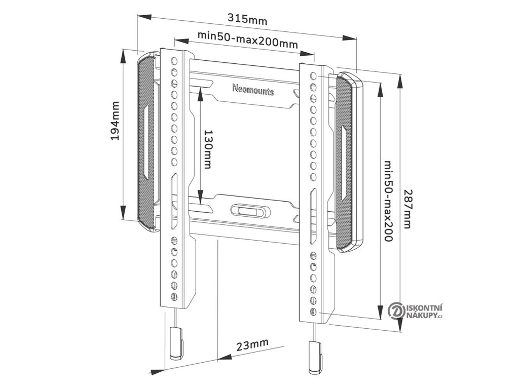 Rozměry VESA: 50 × 50, 75 × 100, 75 × 200, 75 × 75, 100 × 100, 100 × 150, 100 × 200, 100 × 75, 120 × 120, 200 × 100, 200 × 200 mm
