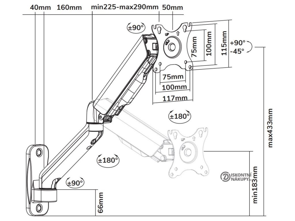Konstrukce: | kloubový, otočný, s náklonem, s nastavitelnou výškou, sklopný |