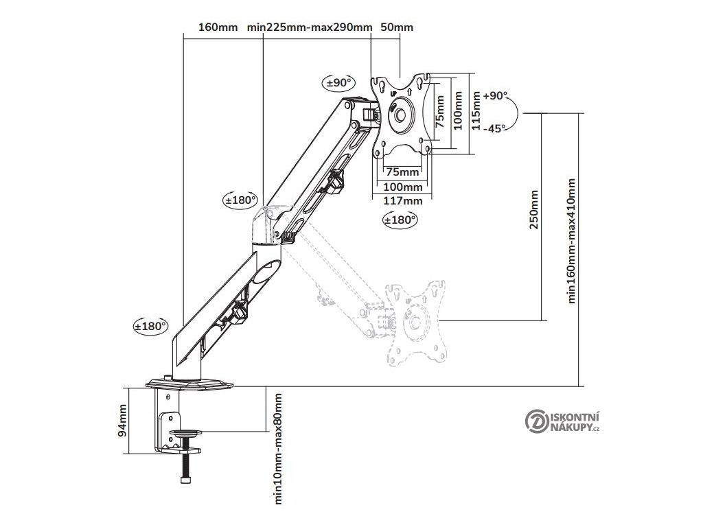 | Konstrukce: | kloubový, otočný, s náklonem, s nastavitelnou výškou, s plynovou pružinou |