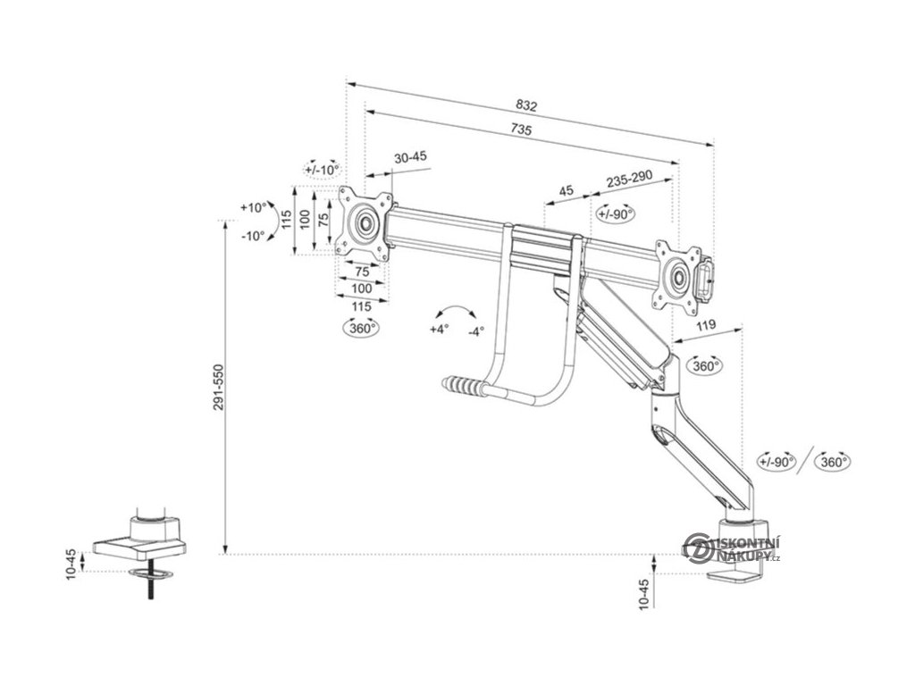 Konstrukce: | kloubový, otočný, s náklonem, s nastavitelnou výškou, s plynovou pružinou, sklopný |