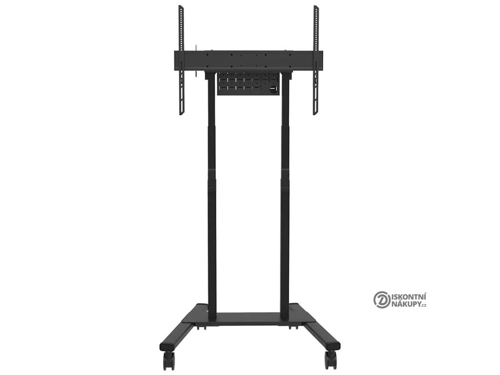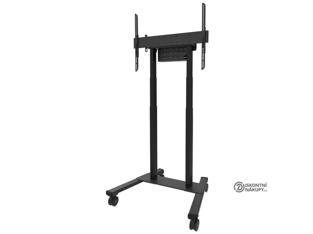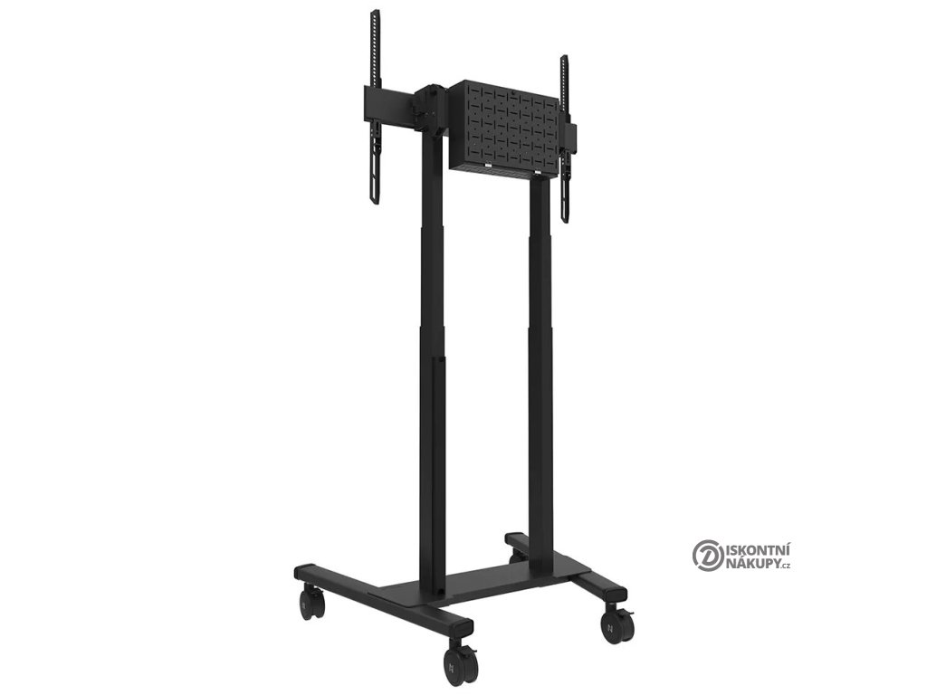 Neomounts FL55-875BL1Mobilní podlahový stojan pro ploché obrazovky s úhlopříčkou od 37" do 100" a hmotností až 110 kg. Nabízí motorizované nastavení výšky (115,2–180,2 cm) pro vytvoření optimálního pozorovacího úhlu. Pro snadný přesun je vybaven rukojeťmi a čtyřmi robustními kolečky o průměru 10 cm. Ve spodní části jsou k dispozici otvory pro uchycení napájecí lišty. Součástí balení je uzamykatelná přihrádka pro počítač s otvorem pro kabely.