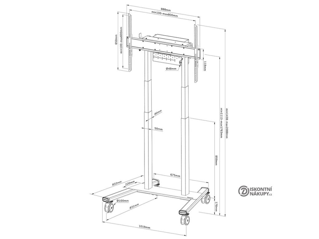 - Pojízdný podlahový stojan - 4 kolečka s brzdou