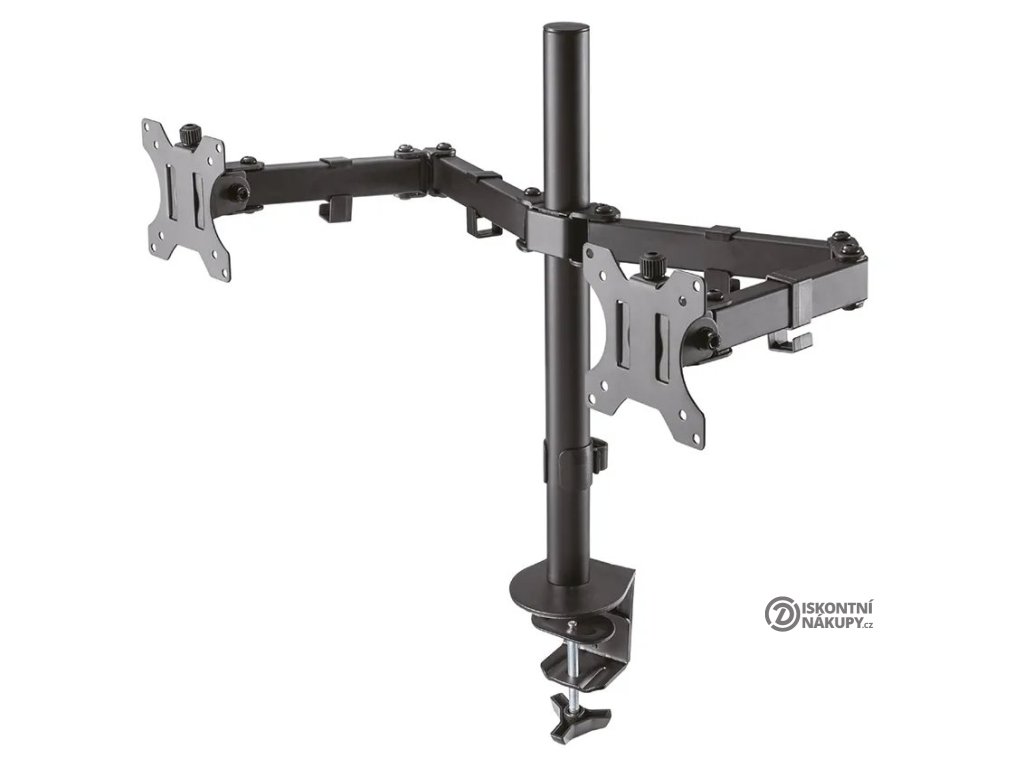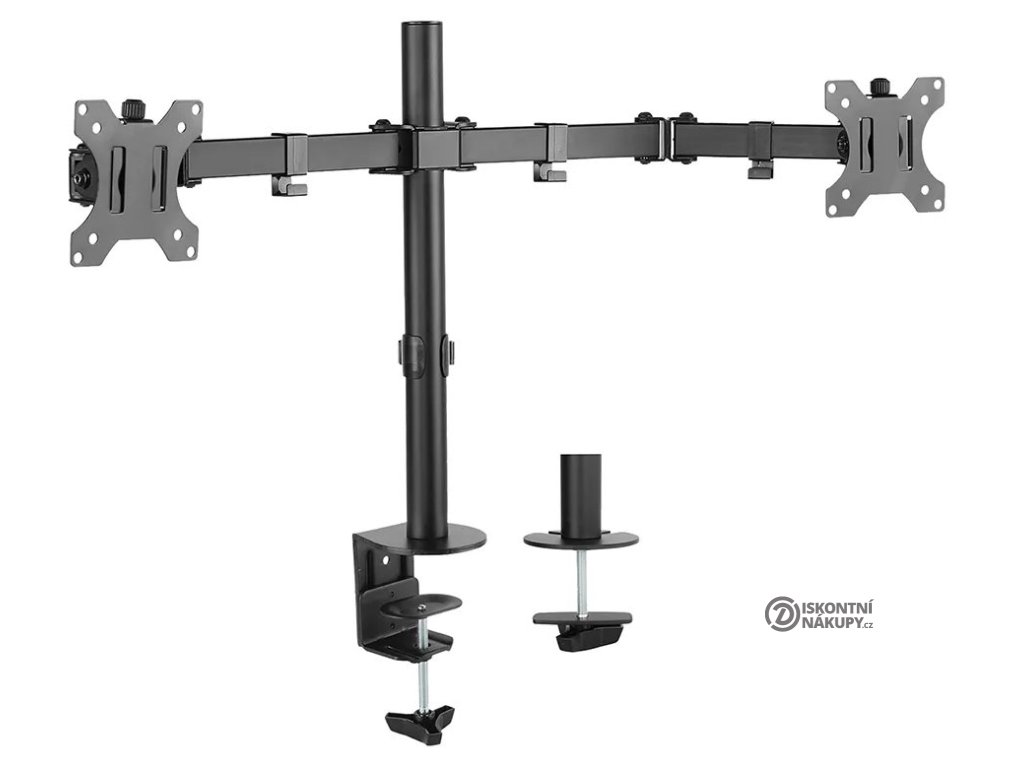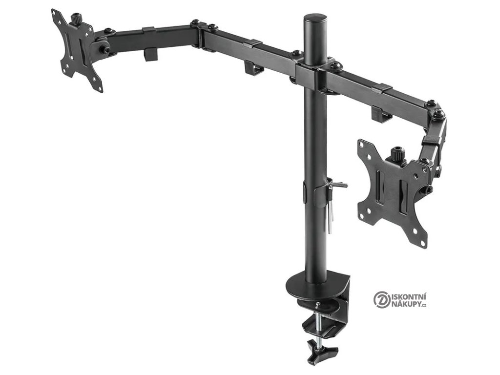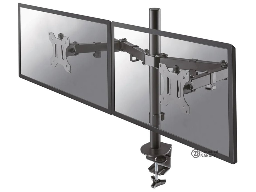 Neomounts FPMA-D550DBLACKFlexibilní stolní VESA držák pro 2 ploché LCD monitory o velikosti 10" až 32" a hmotnosti do 16 kg (2× 8 kg). Držák je manuálně výškově nastavitelný v rozmezí od 0 do 44 cm. Tento stolní držák je vhodný pro obrazovky, které splňují vzor otvorů VESA 75 × 75 nebo 100 × 100 mm. Různé vzory otvorů lze pokrýt pomocí VESA adaptérů. Veškerý instalační materiál je součástí výrobku.