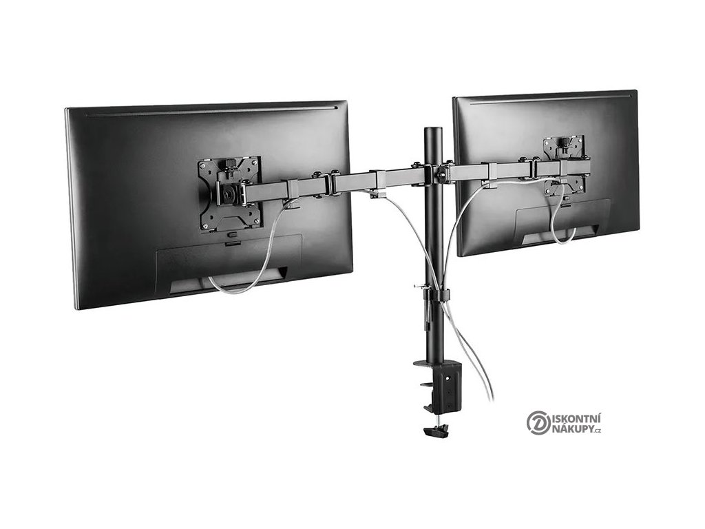 - Plně pohyblivý stolní držák pro 2 ploché obrazovky 10–32"