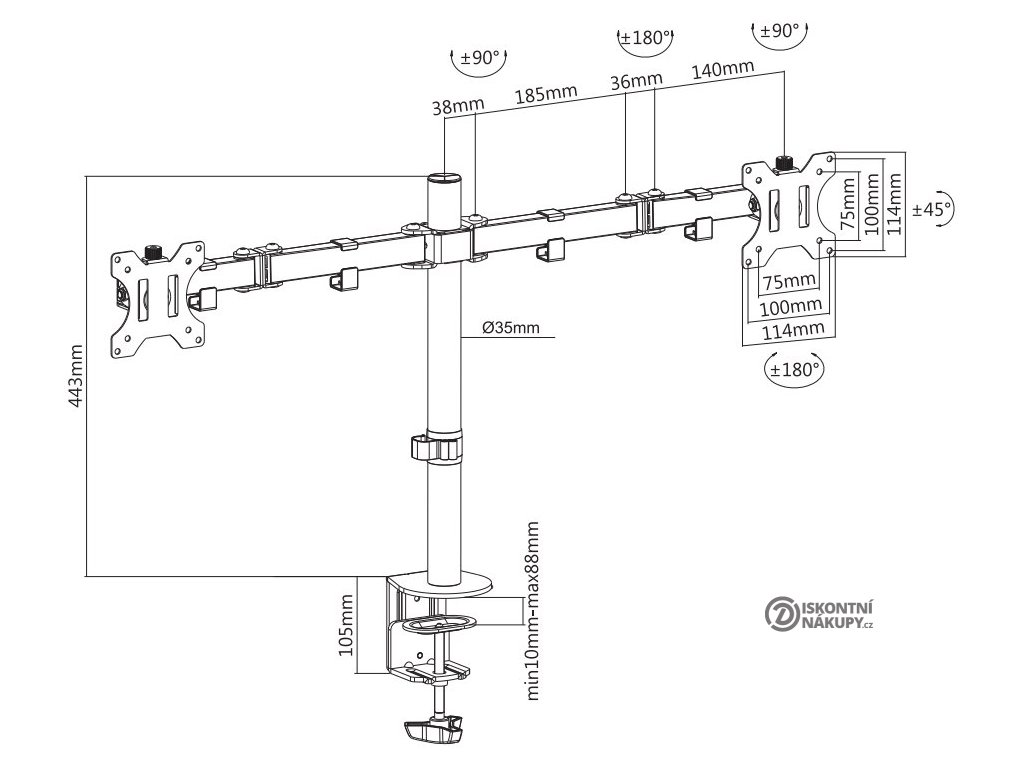 - Kompatibilní s VESA standardem 75 × 75 a 100 × 100 mm