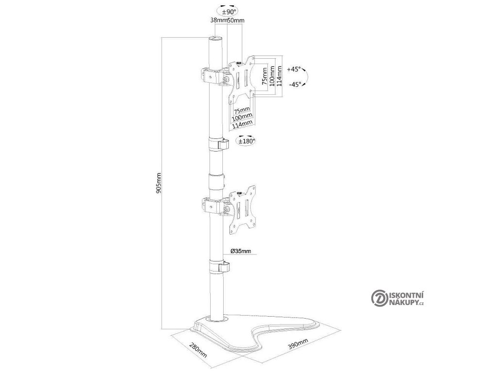 - Kompatibilní s VESA standardem 75 × 75 a 100 × 100 mm