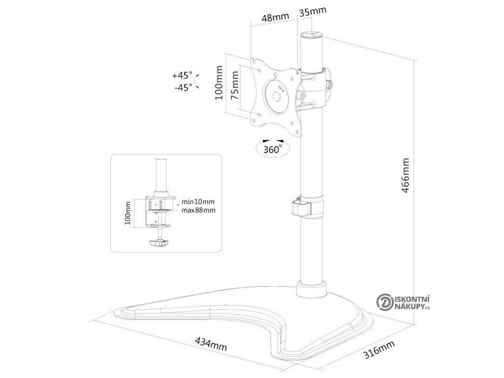 - Kompatibilní s VESA standardem 75 × 75 a 100 × 100 mm