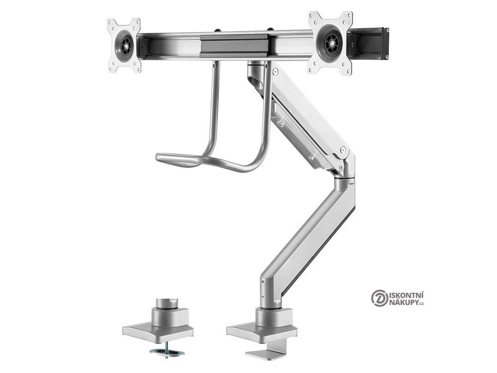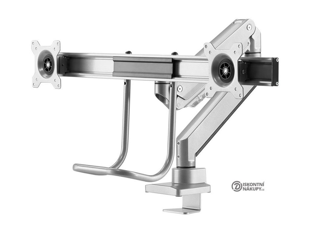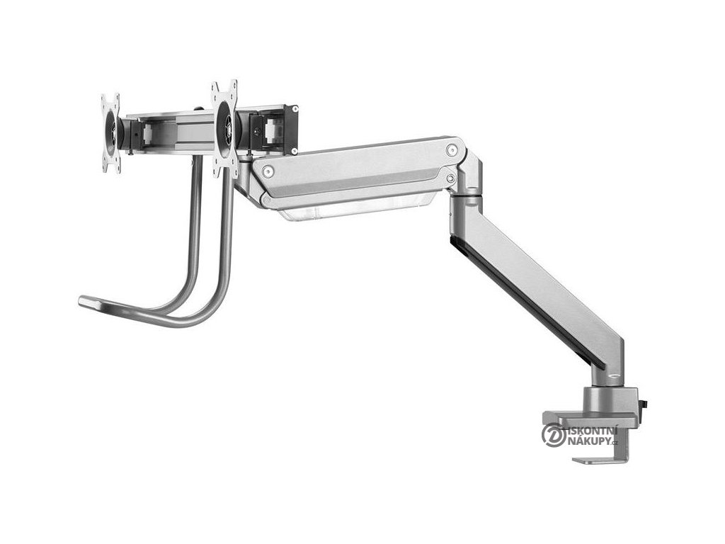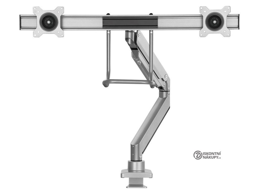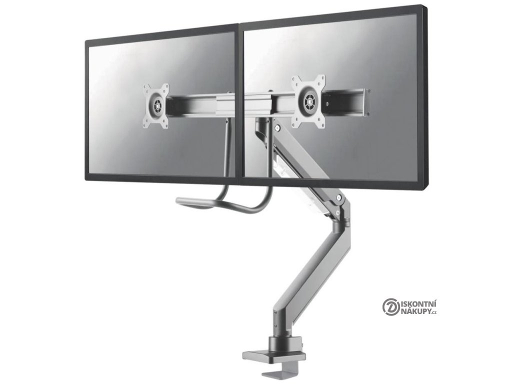 Neomounts NM-D775DXSILVERFlexibilní stolní VESA držák s rukojetí pro 2 ploché monitory o velikosti 10" až 32" a maximální nosnosti do 16 kg (2× 8 kg). Univerzální technologie naklápění, otáčení a rotace umožňuje optimální nastavení. Veškerý instalační materiál je součástí výrobku.