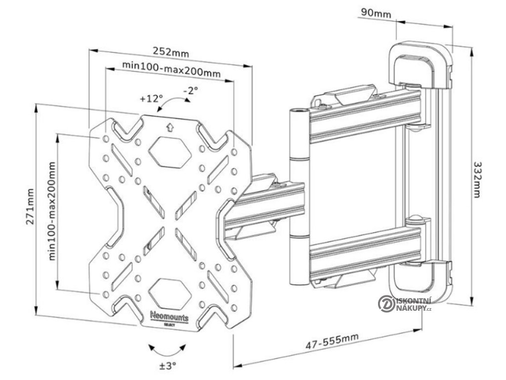 Neomounts WL40S-850BL12Sklopný a otočný nástěnný držák pro ploché obrazovky s úhlopříčkou od 32" do 55" a nosností až 40 kg. Možnost náklonu o -2° až +12° a otáčení o 60° umožňuje nastavit požadovaný úhel pohledu pro maximální flexibilitu při sledování obrazovky. Intuitivní systém správy kabeláže minimalizuje nepořádek. Držák má snadno nastavitelnou hloubku od 4,7 do 55,5 cm a je vhodný pro obrazovky, které odpovídají standardům VESA 100 × 100 až 200 × 200 mm. Přidanou hodnotou je praktický systém Easy-release pro připevnění televizoru mrknutím oka a samostatná vodováha + upevňovací šablona pro snadnou instalaci.