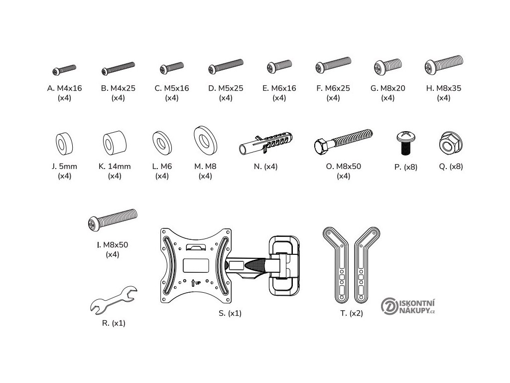 Rozměry VESA: 100 × 100, 200 × 100, 200 × 200, 200 × 300, 200 × 400, 300 × 200, 300 × 300, 400 × 200, 400 × 300, 400 × 400 mm