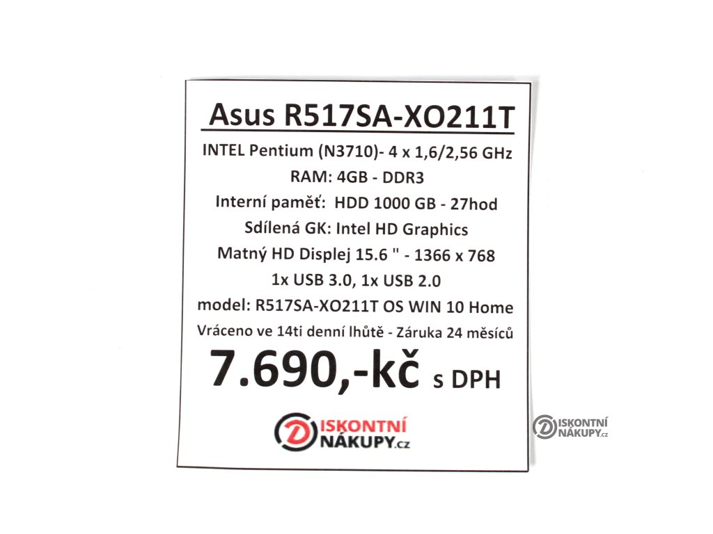 Notebook Asus R517SA-XO211T modrý Vráceno ve 14ti denní lhůtě-27h.