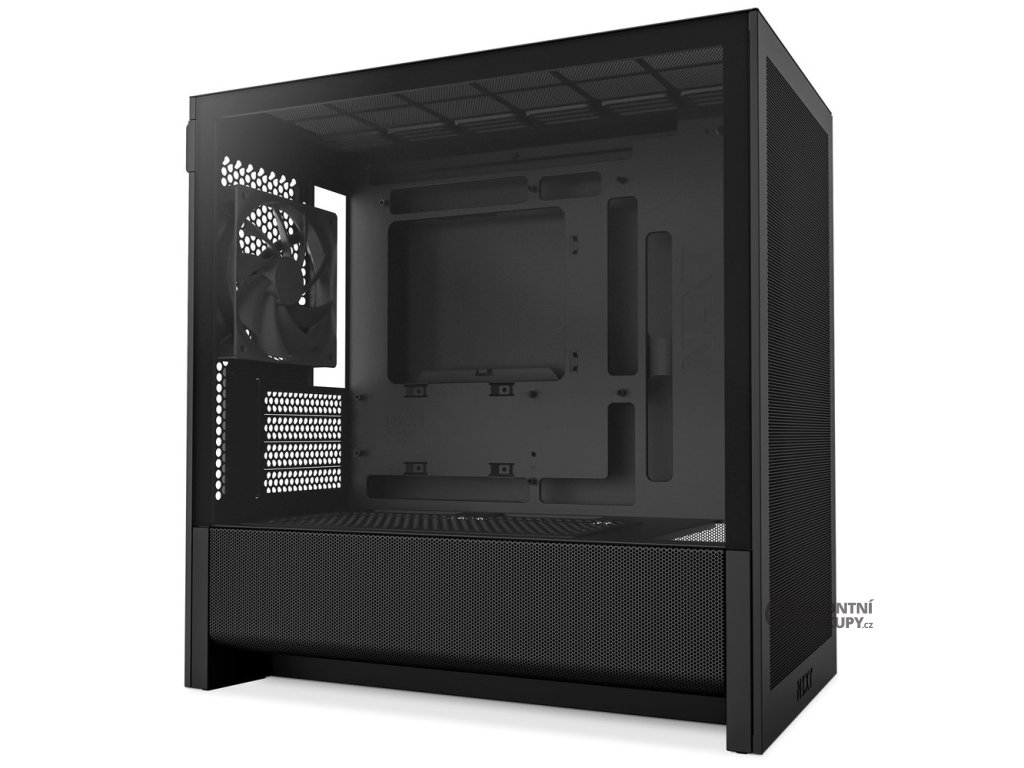 Malá PC skříň NZXT H3 Flow, která to umí nandat i mnohem větším cvalíkům. Tento model ve formátu Mini Tower staví primárně na efektivním chlazení. Vyznačuje se přítomností panelům s velmi jemnou perforací a ventilovaným krytem zdroje. Síťovaný design pomáhá chlazení a brání usazování prachu. Odvětrávaný kryt zdroje zase zajistí optimální airflow zespodu.